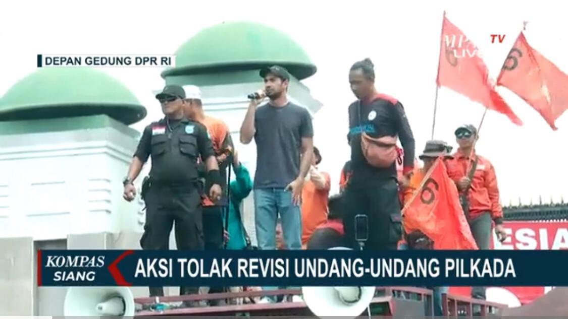 Reza Rahadian ikut dalam aksi unjuk rasa di depan gedung DPR, Jakarta pada hari ini, Kamis (22/8/2024).