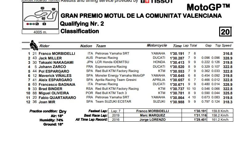 Hasil kualifikasi dan jadwal live streaming MotoGP Valencia 2020, tayang Trans7, Minggu (15/11/2020) - Hasil Kualifikasi MotoGP Valencia 2020, Franco Morbidelli raih Pole Position.