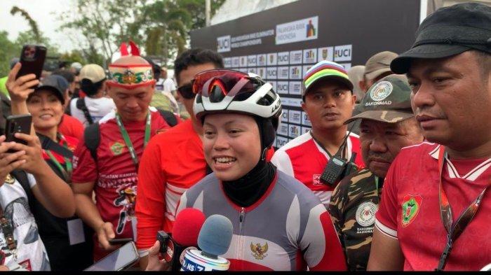 TRIBUNNEWS.COM, PALANGKA RAYA - Senyum lebar dengan tangis bahagia menghiasi wajah Dara Latifah usai tampil di final UCI MTB Eliminator World Championship 2023.