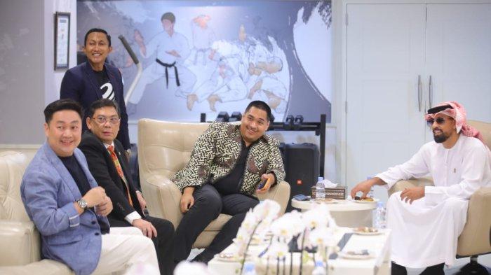 "Terima kasih telah menerima kedatangan kami. Senang bertemu dengan Anda,” tutur Sheikh Sultan kepada Menpora Dito.