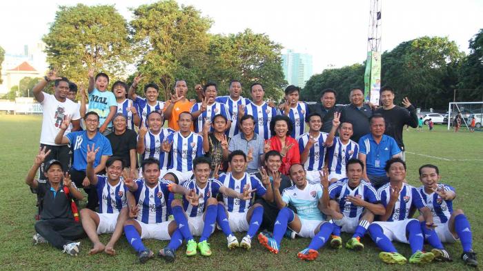 TRIBUNNEWS.COM, JAKARTA - Kesebelasan SIWO Jaya akhirnya keluar sebagai juara Turnamen Sepakbola Piala Agum Gumelar IX-2015 setelah di partai mengalahkan kesebelasan Persatuan Seniman Komedi dan Mantan Atlet Nasional (PaSKI-MAN) dengan skor 3-2 di lapangan Timnas PSSI, Sabtu (10/1/2015).