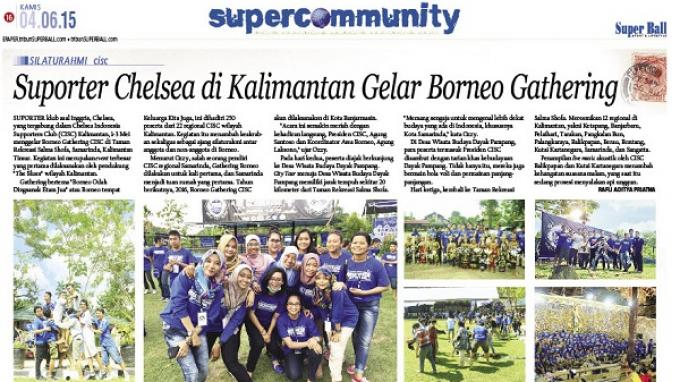 TRIBUNNEWS.COM - Suporter klub asal Inggris, Chelsea, yang tergabung dalam Chelsea Indonesia Supporters Club (CISC) Kalimantan, 1-3 Mei menggelar Borneo Gathering CISC di Taman Rekreasi Salma Shofa, Samarinda, Kalimantan Timur. Kegiatan ini merupakan event terbesar yang pertama dilaksanakan oleh pendukung "The Blues" wilayah Kalimantan.
