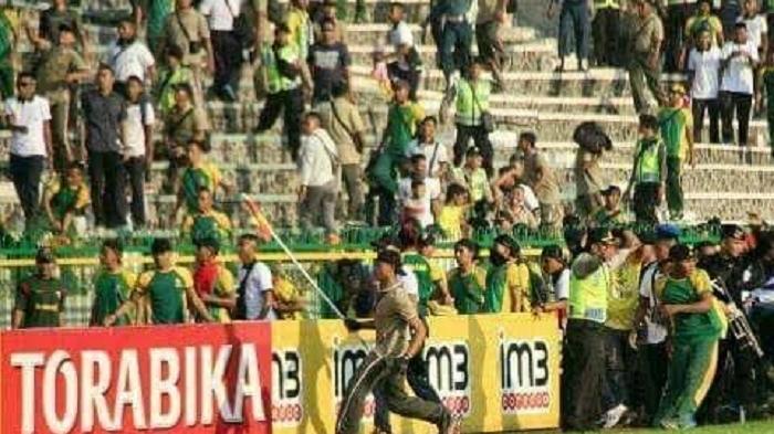 6. Suporter PS TNI yang didominasi oleh anggota TNI pun kemudian menyerbu Ultras di sektor empat.