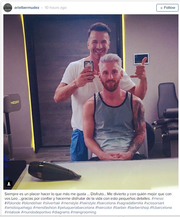 Dari Instagram-nya Bermudez mengungkapkan bahwa dialah yang punya ide atas warna rambut Messi tersebut.
