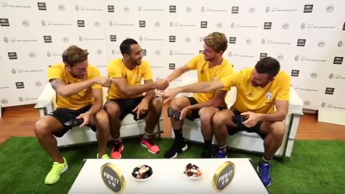 Claudio Marchisio, Medhi Benatia, Daniele Rugani, dan Andrea Barzagli mempamerkan kehebatan bermain FIFA 17.