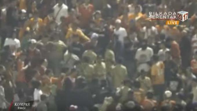 Tanpa diketahui penyebabnya, seorang penonton dipukuli puluhan orang disekitarnya.