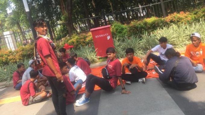 “Ya kita sudah di sini dari jam 10 (pagi). Saya izin kerja untuk nonton ke sini, teman -teman saya juga,” ujar Andri yang tengah bereteduh di bawah pohon rindang bersama ketiga rekannya.