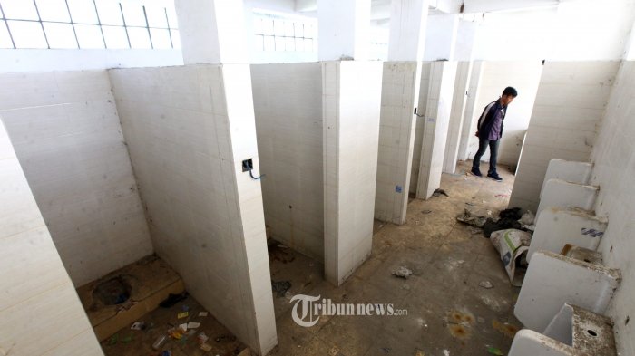 Memasuki bagian dalam, terlihat tembok dengan dua lubang yang tidak terurus serta kloset yang viral itu dipenuhi berbagai macam sampah seperti terlihat bekas botol minum, sampah plastik dan debu.