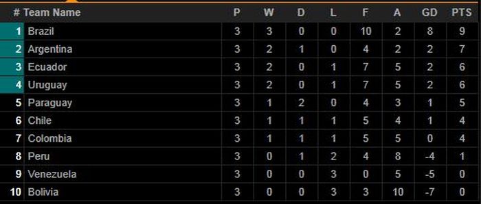 Klasemen sementara kualifikasi Piala Dunia 2022 zona CONMEBOL