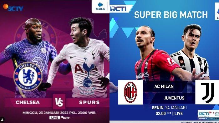 Siaran Langsung Bola Malam Ini: Chelsea vs Tottenham Hotspur, AC Milan vs Juventus, Live SCTV & RCTI