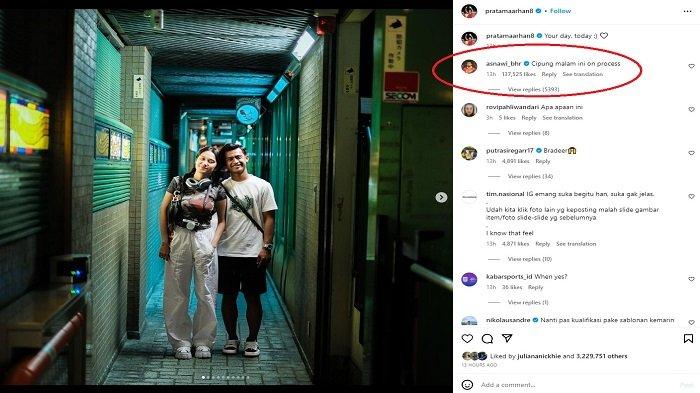 Lain memang apa yang dituliskan Asnawi untuk mengomentari postingan terbaru Pratama Arhan bersama Azizah Salsha istrinya.