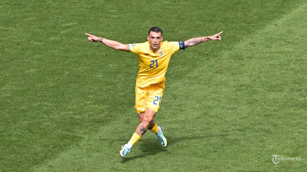 Rumania menang 3-0 tanpa balas atas Ukraina di Allianz Arena, kemarin (17/6/2024).