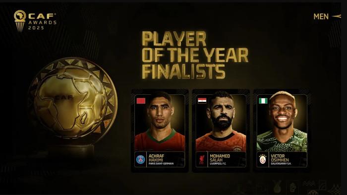 Achraf Hakimi, Victor Osimhen, dan Mohamed Salah masuk dalam daftar pendek untuk penghargaan pemain pria Afrika Terbaik 2025.