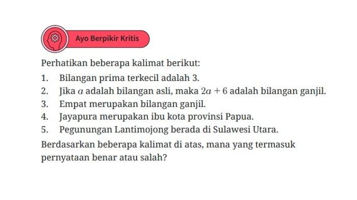 Kunci jawaban Matematika Kelas 8Halaman 103 Kurikulum Merdeka, Ayo Berpikir Kritis, Bab 3 Persamaan Linier dan Pertidaksamaan Linier Satu Variabel 1.