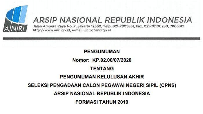 Pengumuman Hasil Akhir CPNS 2019 Arsip Nasional Republik Indonesia (ANRI), Berikut Daftar Nama yang Lulus, Cek di Sini!