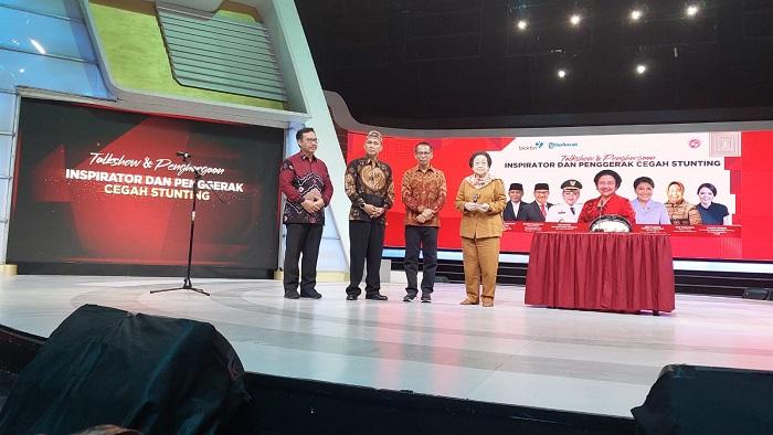Presiden Kelima RI Megawati Soekarnoputri menerima penghargaan sebagai Inspirator dan Penggerak Cegah Stunting di Indonesia.