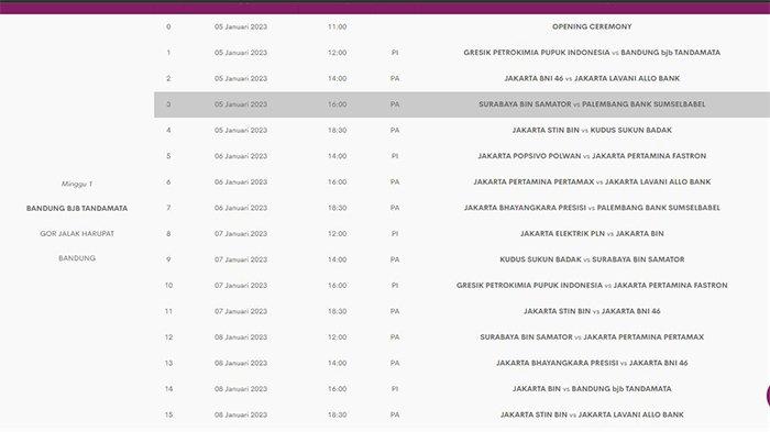 Berikut jadwal lengkap Proliga 2023 seri Bandung akan yang menggelar pertandingan mulai Kamis 5 Januari, ada duel Gresik Petrokimia vs BJB Tandamata.