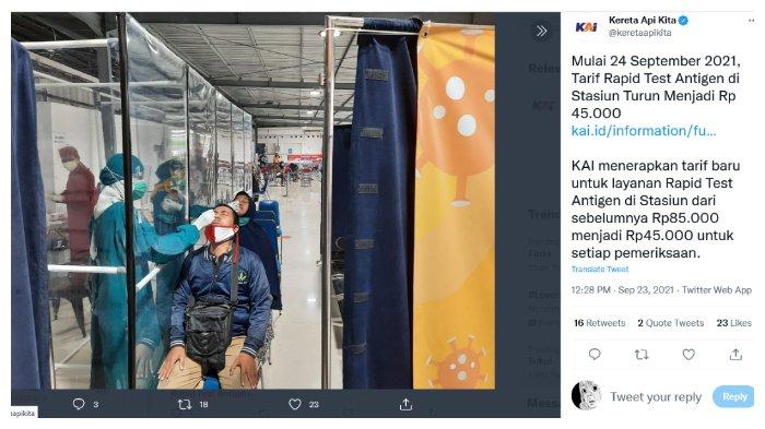 PT KAI resmi menurunkan harga rapid test di stasiun jadi Rp 45 Ribu mulai Jumat (24/9/2021) besok. Simak daftar stasiun berikut ini.