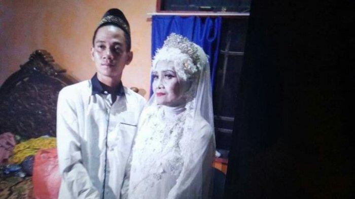 Fatimah yang berusia di atas 60 tahun merasa bahagia akhirnya bisa menikah dengan M Riswan masih berusia 23 tahun.
