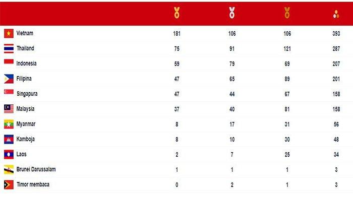 Update Klasemen Perolehan Medali SEA Games 2022, Kumpulkan 196 Medali, Indonesia di Posisi Ketiga