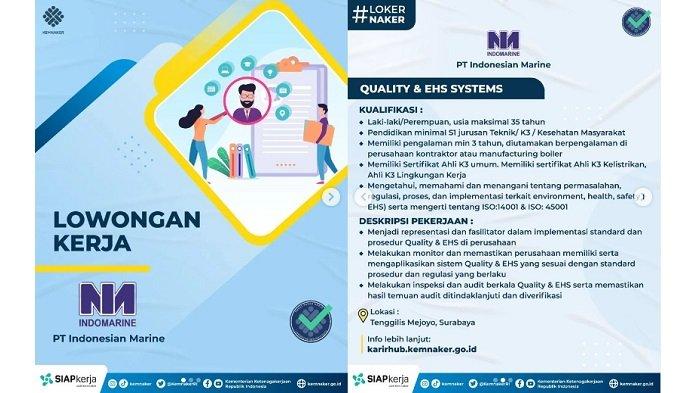 PT Indonesian Marine membuka lowongan pekerjaan bagi lulusan D3 atau S1. Ada dua posisi yang tersedia. Simak selengkapnya di sini.