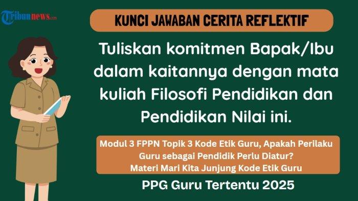 Kunci jawaban cerita reflektif modul 3 topik 3 PPG 2025: tuliskan komitmen Bapak/Ibu kaitannya dengan Filosofi Pendidikan dan Pendidikan Nilai.