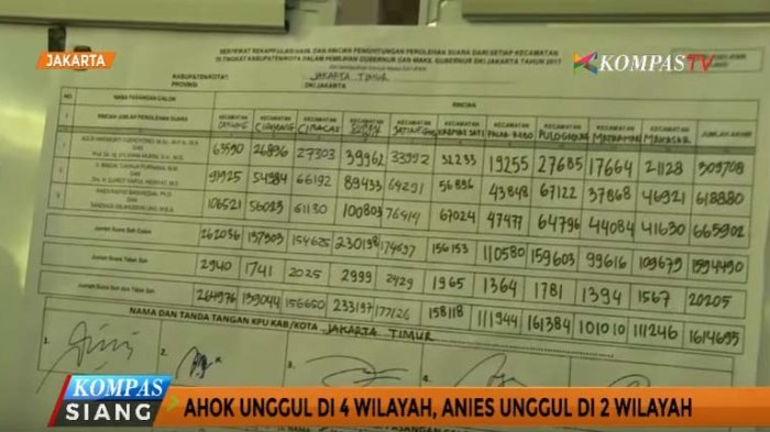 Ahok Unggul di 4 Wilayah Anies Unggul di 2 Wilayah