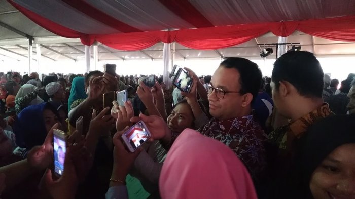 Gubernur DKI Jakarta Anies Baswedan diperebutkan ratusan warga untuk sekedar berselfie bersama.