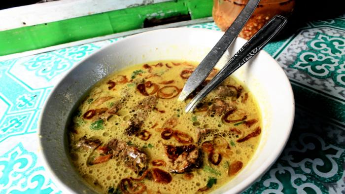 Meski Jualan ala Kaki Lima di Tepi Jalan, Warung Soto Kuning Bang Rojak Tak Pernah Sepi Pelanggan