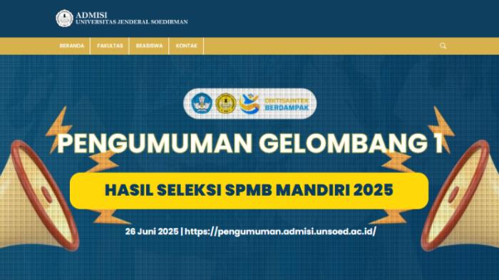 Hasil SPMB Mandiri UTBK Unsoed Diumumkan, Cek di pengumuman.spmb.unsoed.ac.id