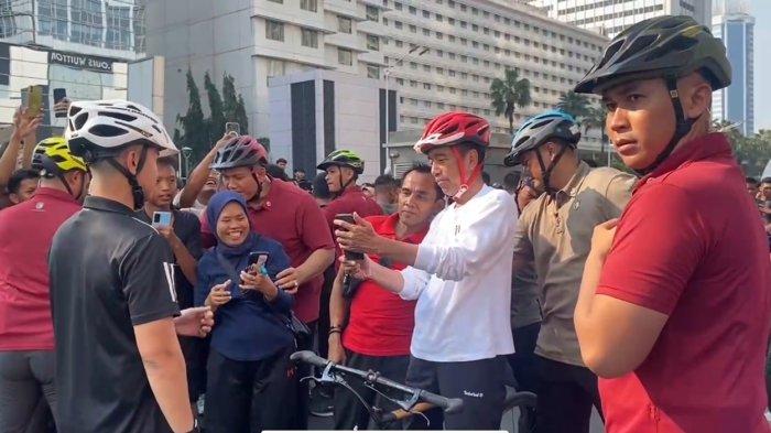 Saat Presiden Jokowi Berbaur dengan Masyarakat Bersepeda di Kawasan CFD Sudirman-Thamrin