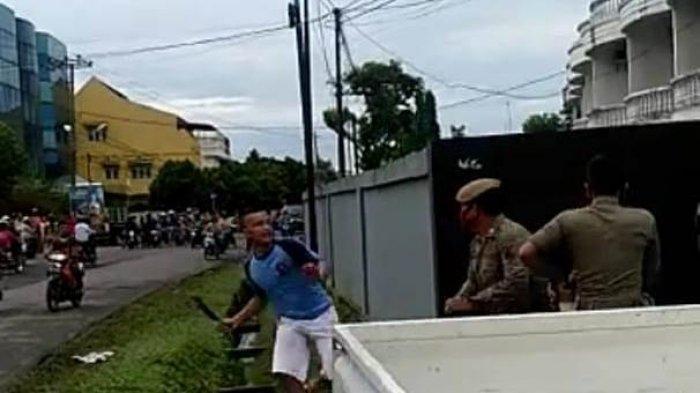 Penertiban PKL di Jambi Ricuh, Seseorang Bawa Parang Ancam PKL