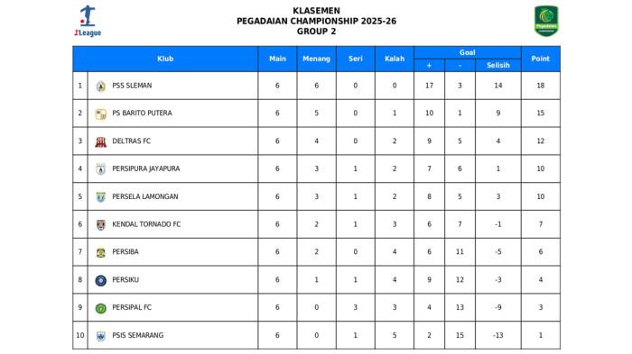 Update Klasemen Liga 2 Pekan 6: PSS Sleman dengan Kesempurnaan Kudeta Barito Putera, PSIS Terpuruk