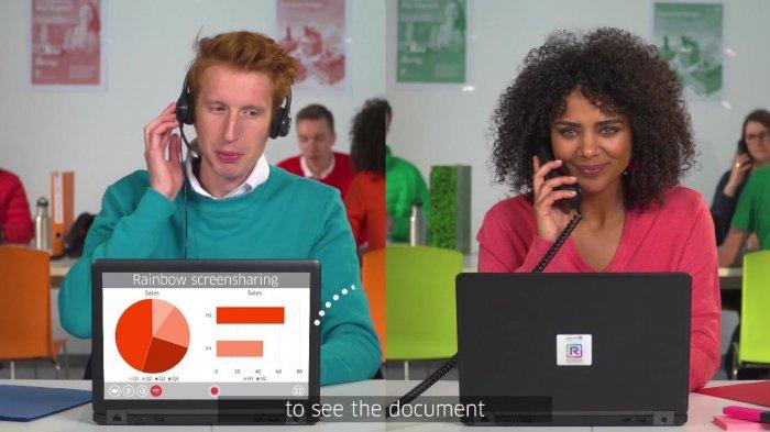 Platform Alcatel-Lucent Rainbow merupakan solusi hybrid berbasis komputasi awan yang bisa menyediakan layanan komunikasi dan kolaborasi yang sangat bermanfaat meliputi layanan pesan instan, layanan suara dan video kualitas tinggi.