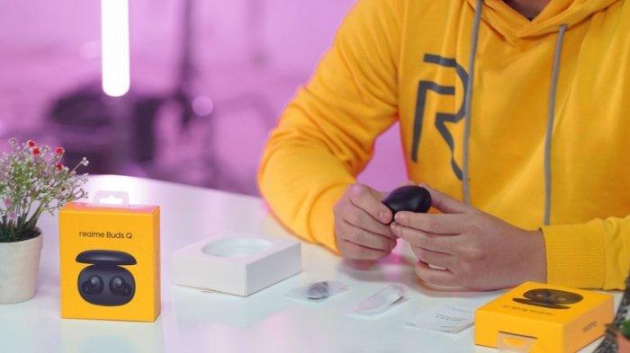 TRIBUNNEWS.COM, JAKARTA - Realme resmi meluncurkan produk earphone True Wireless Stereo (TWS) terbaru, yaitu Realme Buds Q.