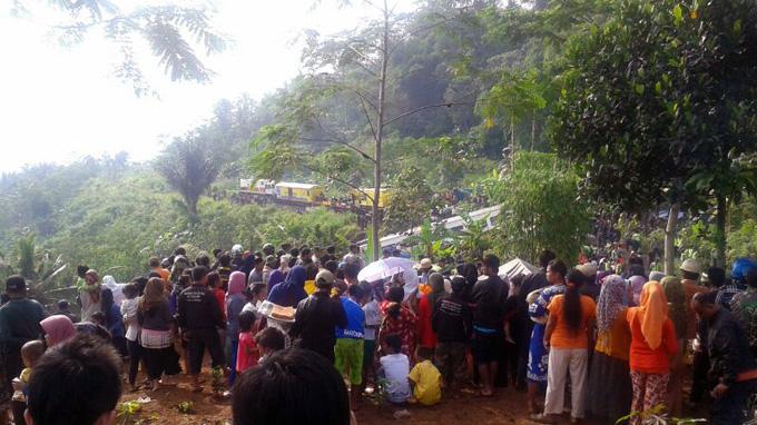 Tiga gerbong dikabarkan masuk jurang dan satu lokomotif ikut terguling