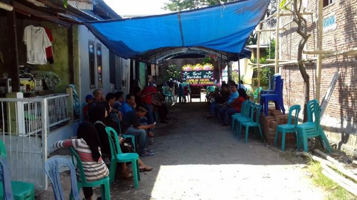 Puluhan kerabat masih menunggu kedatangan jenazah Bripda Michael Abraham Rieuwpassa, di Perumahan Villa Mutiara, Jl Biru 1, No 11.