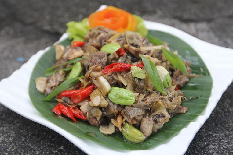 Selain itu, irisan daging sapi menambah oseng jantung pisang Sambi Resto menjadi istimewa.