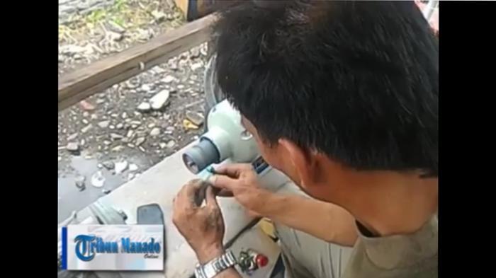 Dari pantauan Tribun, Kamis (14/5/2015), pria yang membuka usaha di Jalan Sarapung, Kecamatan Wenang, Manado tersebut hanya bermodalkan tempat kecil seperti pondok dan mesin gerinda.