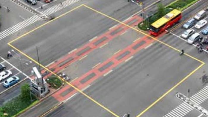 Sejak beberapa waktu lalu polisi lalu lintas memberlakukan sistem kanalisasi jalur kendaraa