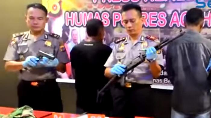 “Dari Raja Rimba dan Ta’eun, kami sita satu pucuk senjata AK 56 beserta megazen, 18 butir peluru AK, kemudian 27 butir peluru FN, satu Air Soft Gun dan tiga lembar baju loreng,” ungkap Hendri.