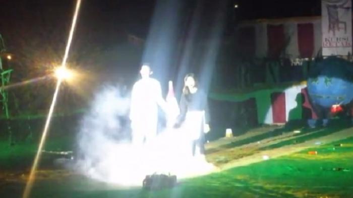 Mereka mementaskan teater berjudul "Kursi Retak", di Lapangan sepak bola Syuradikara, Ende.